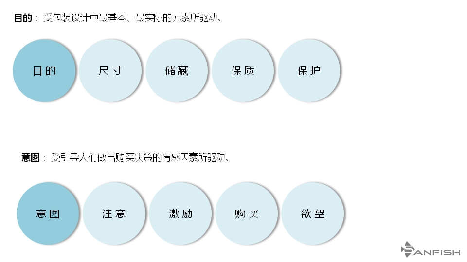 意圖有時也被稱為功能,與包裝設計的目的完全不同,它著眼于如何打動消費者。在零售環境中,包裝的任務是引起潛在購買者的注意,迅速地傳播多樣化的品牌價值。如果包裝能成功說服消費者,使其相信產品能夠滿足他們的某種需求,那他們將會樂意接受該產品。久而久之,品牌信息的傳播便會與顧客的需求相結合,從而培養起顧客對品牌的忠誠。包裝通過反復宣傳消費者重視的產品價值,激發了他們重復購買的欲望。