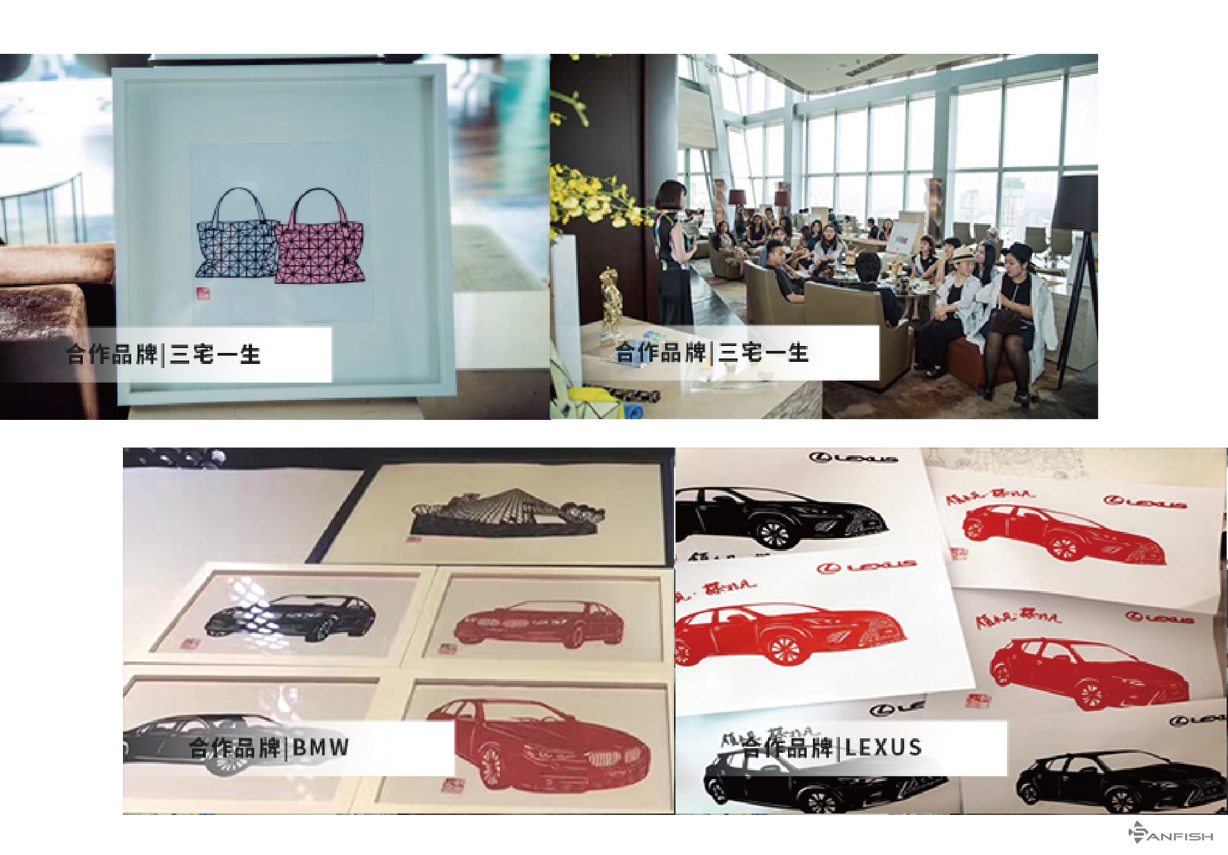 越來越多的品牌看到了傳統的衍生價值,除了上述這些合作案例,我們的剪紙藝術家也走進了城市的各大藝術展,以及跨界聯合。