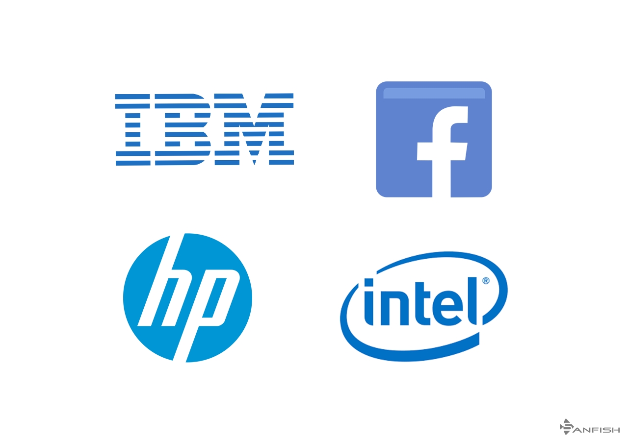 你一定注意到許多科技品牌的標志是藍色的,比如FacebookIBMIntelHP,他們使用這種被動色來象征自由,信任,智慧和進步。