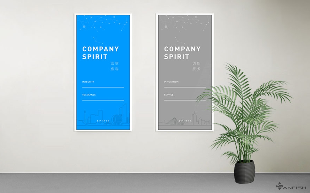 涉及規劃區域:前臺區域、樓梯間、辦公區域文化墻面、休閑區域、主通道長廊(超過20米)